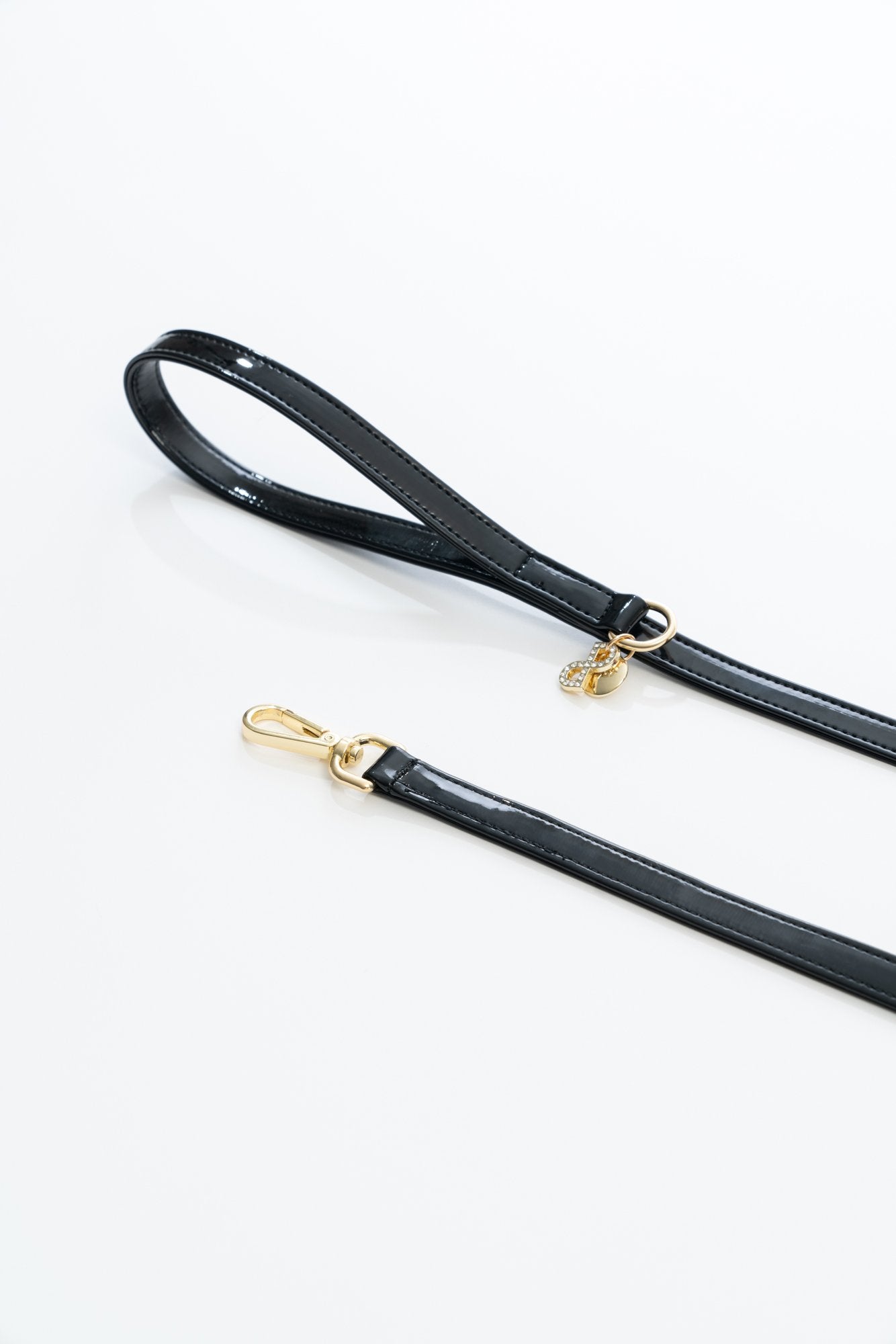 GUINZAGLIO NERO IN VERNICE CON FINITURE ORO
