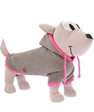 Maglioncino con cappuccio, asola per fuoriuscita guinzaglio, elastici posteriori per le zampine , elastici nel cappuccio e bottone ferma cappuccio. L'interno del maglioncino e' in caldo e morbido pile. Esterno 100% acrilico.